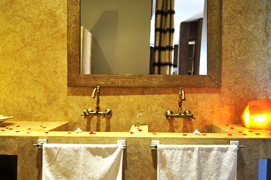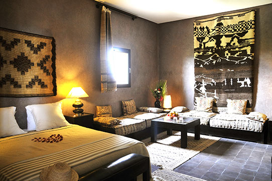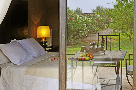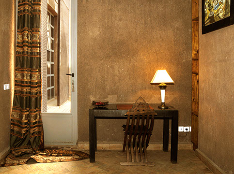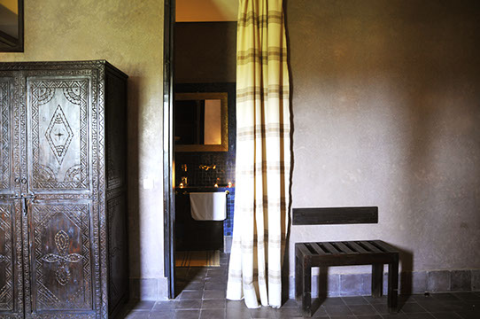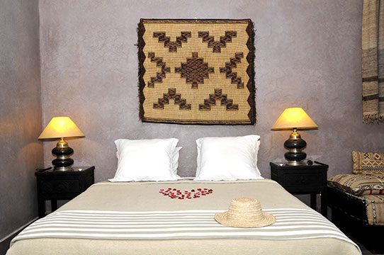 35 m2 + 22 m2, à l’étage, terrasse privée, lit double, salle d’eau équipée, cheminée, orientation Sud, vue directe sur l’Atlas. Air conditioné.